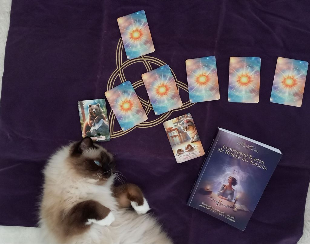 Nachdem mich die erste Karte – die Mäuse – erschüttert zurückgelassen hatte, weil sie mir zeigte, dass Theos Seele den Weg ins Licht nicht gehen konnte, blieb mir kaum Zeit, um meine Fassung wiederzufinden. Doch das Legen der Karten folgt seinem eigenen Rhythmus, und so griff ich mit klopfendem Herzen zur nächsten. Sie stand für den Übergangspfad – die Frage, wie Theos eigener Übergang verlaufen war.